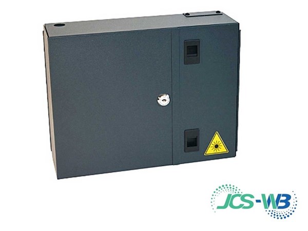 The JCS Technologies indoor wall mountable fibre optic break out enclosure supports the use of loose tube fibre and riser cable types.
